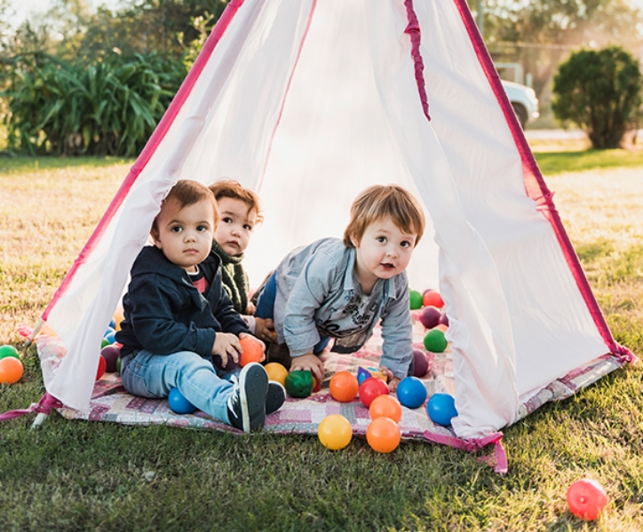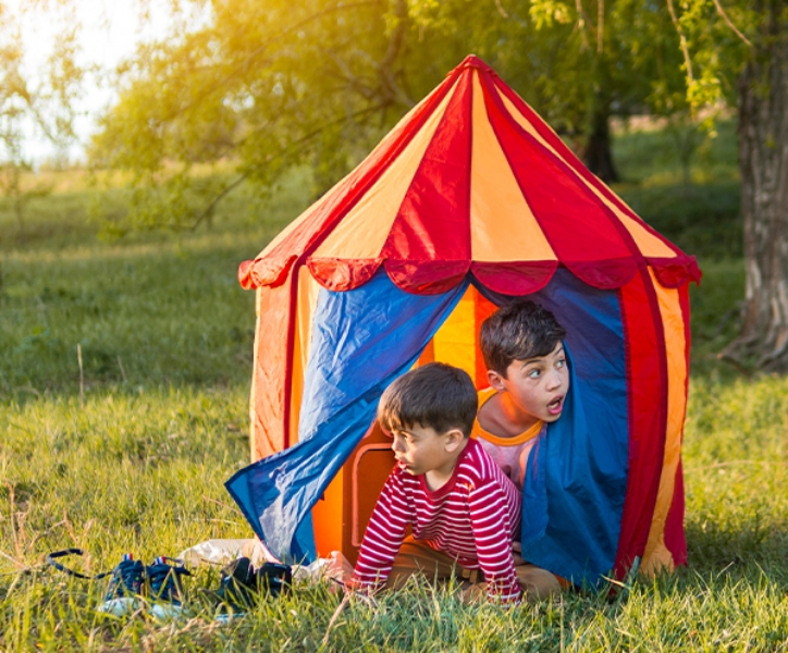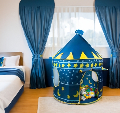 La tenda è il luogo in cui la fantasia prende vita: il bambino inventa giochi, crea mondi fantastici, si trasforma in cavaliere, principessa o pirata, vivendo ogni giorno nuove avventure ricche di emozioni.